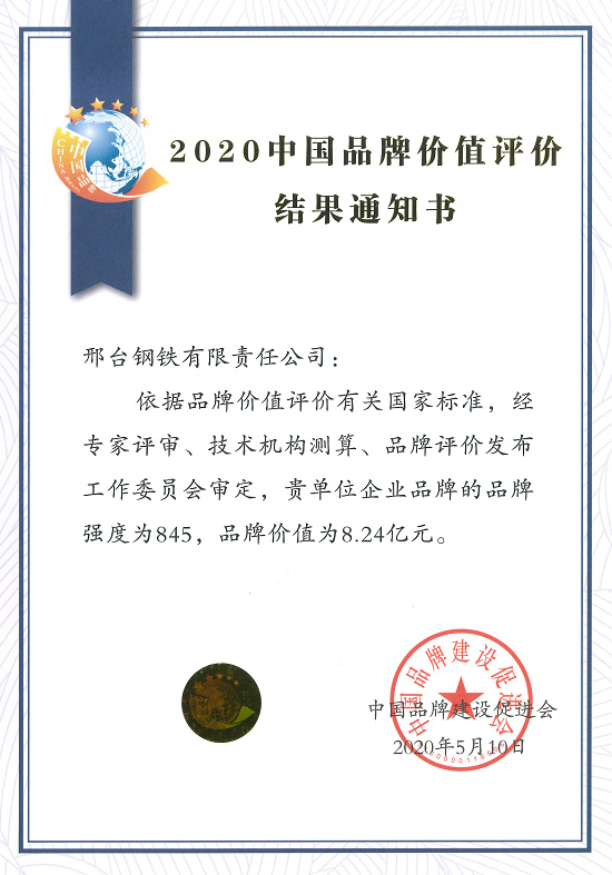 - 邢鋼被授予“2020年全國(guó)質(zhì)量標(biāo)桿”