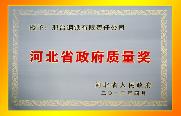 Xingtai Steel Was Awarded Hebei Government Quality Award 2012